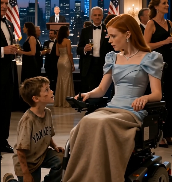 The boy didn’t answer. He reached out with one small, dirt-streaked hand and placed it gently on her knee, right through the fabric of her designer gown. He closed his eyes.